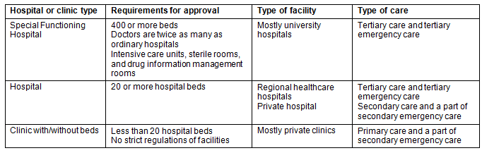 Table 1: Type of medical institutions restricted by the Medical Care Act8,9