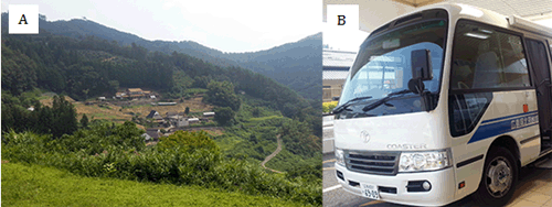Figure 1: (A) A typical non-physician community in Japan and (B) a mobile clinic