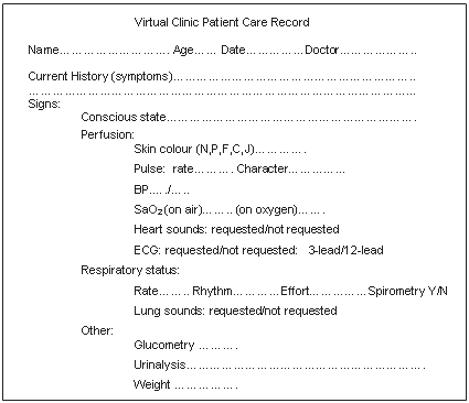 Figure 4: Patient care record used by attendants in the 'virtual clinic'.