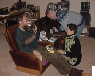 Figure 3: Local volunteer attendants acquire clinical information from a simulated patient. The doctor can be seen supervising via videophone.