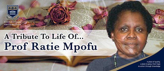 Ratie Mpofu was an Emeritus Professor at the University of the Western Cape (UWC), in Cape Town, South Africa. Born on 4 August 1945, she passed away on 19 October 2013 at 68 years of age.