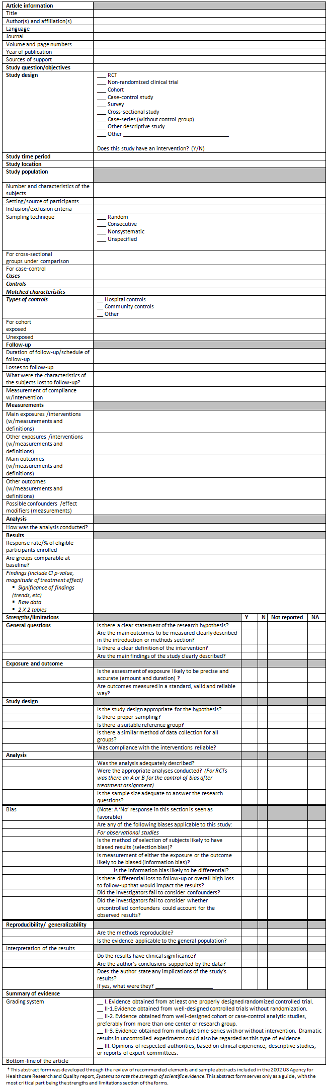 Appendix I: Individual studies abstract form?