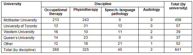Table 1: Northern Studies Stream and Rehabilitation Studies program participants 2002-2010 by university and discipline (n=641)