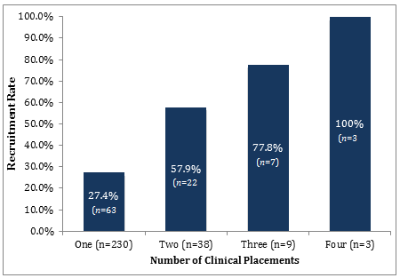 Figure 2: Recruitment rate by number of clinical placements (categorized by area of upbringing).