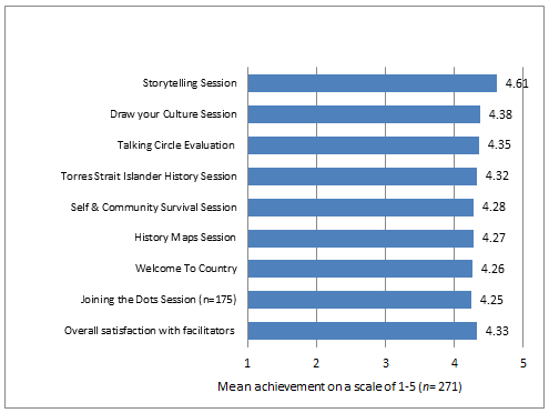 Students also strongly agreed that the Welcome to Country session enabled them to understand the importance and roles of elders, traditions, ceremony and significance of the land to Aboriginal peoples. Students indicated that the Torres Strait Islander History and History Maps sessions met their objectives and noted the importance of Aboriginal and Torres Strait Islander facilitators. One comment exemplified this: