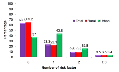 The study was designed as a cross-sectional survey, directly interviewing subjects aged 40-64 years in Ha Nam Province in order to complete a structured questionnaire. This study was integrated in the large population-based research to investigate the magnitude of chronic and non-communicable diseases in Ha Nam Province from July to November 2011. Details of the survey have been reported previously6. In this study, rural and urban areas are classified according to the Vietnam administrative system. The rural areas include communes (a commune has one or several villages) where agriculture is the chief source of livelihood, along with fishing, pottery, and handwork. The urban areas are composed of wards in the city where industry, services, and trade are the main source of livelihood.