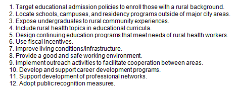 27. Wilson NW, Couper ID, Vries ED, Reid S, Fish T, Marais BJ. A critical review of interventions to redress the inequitable distribution of health care professionals to rural and remote areas. Rural Remote Health 9(2): 1060. (Online) 2009. Available: www.rrh.org.au (Accessed 15 July 2015).