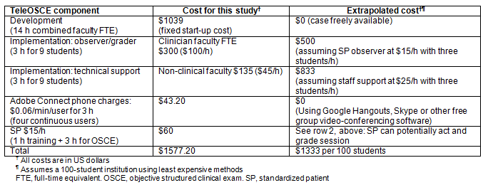 Table 1: Cost of development and implementation of the tele-objective structured clinical exam.