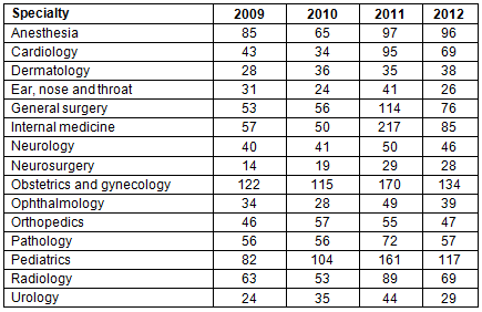 Table 2: Number of graduated physicians by specialty and year of graduation