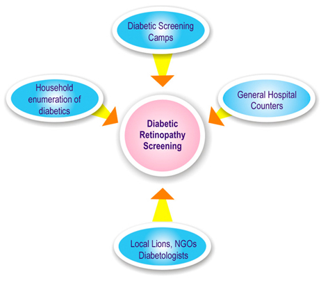 - Community participation is the key to success for any awareness or screening model. Local village groups like women's self-help groups play an important role in motivating diabetics to attend screening camps.