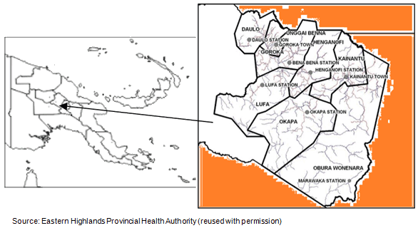 Figure 1: Eastern Highlands Province, Papua New Guinea, showing the location of Henganofi District.