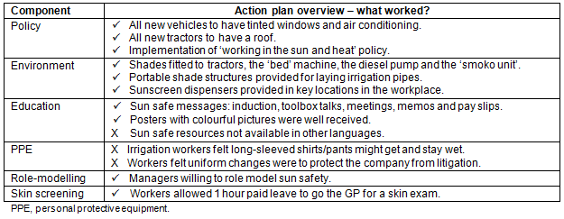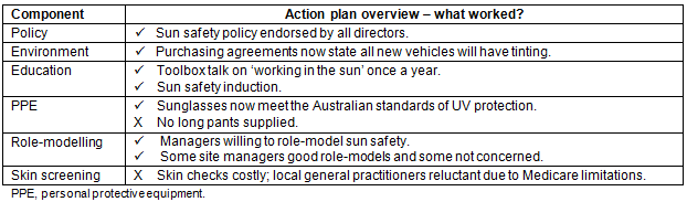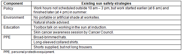 A number of sun safe strategies were successfully adopted in this workplace (Table 3).