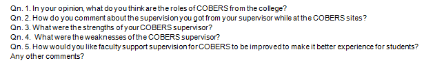 Challenges and ways forward: The students in this study reported some key challenges they had with faculty supervision during COBERS. The following responses are typical.