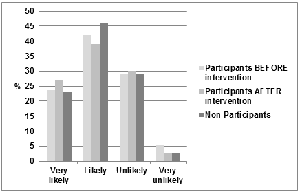 Before the rural day, 25 (66%) rural day participants considered it likely/very likely that they would work in a rural area in the future, while 13 (34%) considered it unlikely/very unlikely. After the rural day, 25 (66%) considered working in a rural area to be likely/very likely and 12 (33%) unlikely/very unlikely. There was no significant difference in the intention to work in a rural area before and after participation in the rural day. Of the 72 non-participants in the rural day, 48 (69%) considered working in a rural area in the future likely/very likely and 22 (32%) unlikely/very unlikely. These findings were not significantly different to those for the participants (Fig1). However, 18 (47%) participants claimed that the rural day changed their overall attitudes towards rural areas positively, 1 (3%) indicated negatively and 19 (50%) indicated no change in their perspective. Participants used the free text to specify what they liked about the rural day.