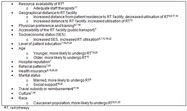 Box 1: Factors identified to influence access to radiation therapy5-8,10,17-23