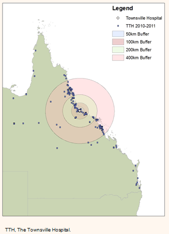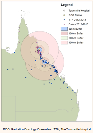 This project was completed as part of the James Cook University Faculty of Medicine Research Scholarship awarded in 2013. The authors thank Mrs Aniko Cooper and Mr Kenton Thompson for allowing access to the oncology database, Mr Alan Goss for his data compilation, Ms Karen Johnston for her ArcGIS assistance, and Mr Shannon Robards for his input and support.