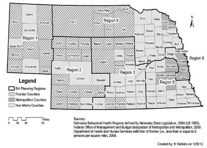 Figure 1: Nebraska counties and behavioral health regions, 2012.