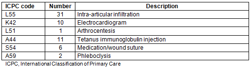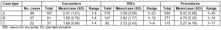 Table 3: Summary of encounters, reasons for encounters and procedures
