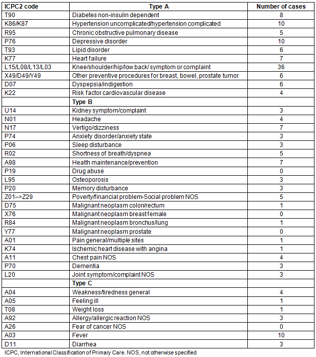 Use of the International Classification of Primary Care to record the data