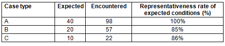Table 4: Representativeness of the cases encountered