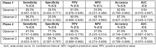 Table 2: Observer's performance for phases 1 and 2