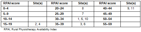Table 4: Eleven sites of this study grouped by Rural Physiotherapy Availability Index scores