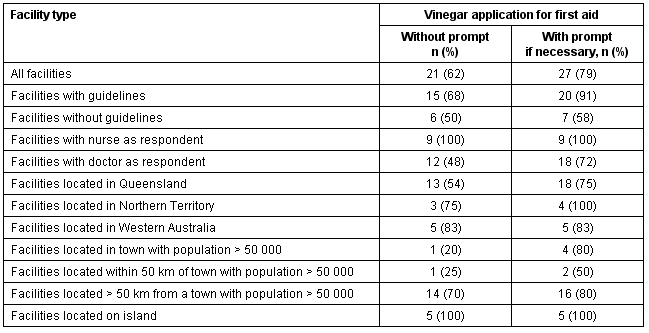 Table 1: Use of vinegar as a first aid measure for suspected Irukandji syndrome