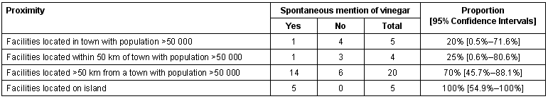 Table 2: Association of spontaneous mention of vinegar as a first aid measure with increasing remoteness