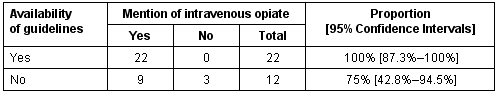 Table 4: Association of guideline availability with intravenous opiate analgesia use