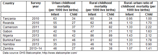 Table 1: Rural and urban infant and child mortality in eight countries of sub-Saharan Africa