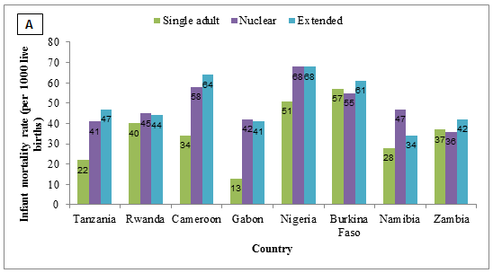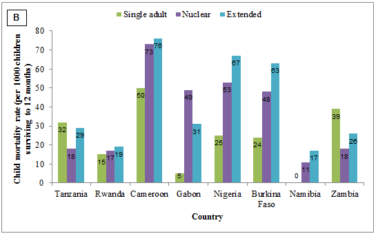 Figure 3: Rural infant (A) and child (B) mortality rates according to household structure in eight countries of sub-Saharan Africa.