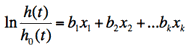 Where x1 to xk are a collection of explanatory variables and h0(t) is the baseline hazard at time t, representing the hazard for a person with zero values for all the explanatory variables. Thus the dependent variable in the model is the log HR. The coefficients bi to bk, which represent the effect of each explanatory variable, are estimated in the process of modelling.