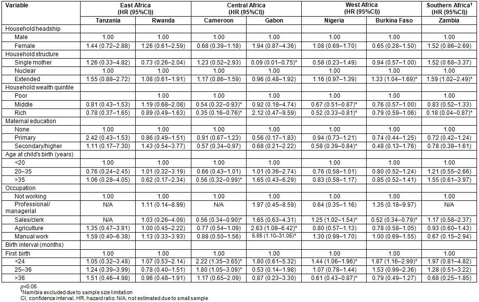 Table 5: Multivariate hazard ratios for relationship between rural child mortality and household characteristics in eight countries of sub-Saharan Africa