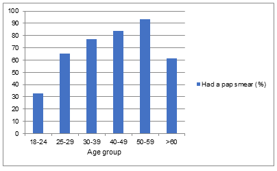 This study had several limitations. The screening rate among this sample may have been artificially high due to selection bias, as only women who came to the clinic were surveyed. These women may be more likely to be screened for cervical cancer. Another limitation may be recall bias, because women may not remember exactly when they were last screened, especially if the last screen was many years prior to the survey. While women were invited to complete the questionnaire after clinic, it is possible that they felt coerced into completing the questionnaire. The results may thus not be generalized.