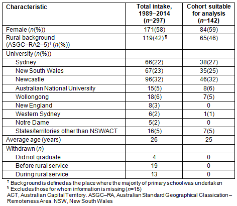 Table 1: Characteristics of all medical students entering the cadetship program and those of cadets in the analysis group