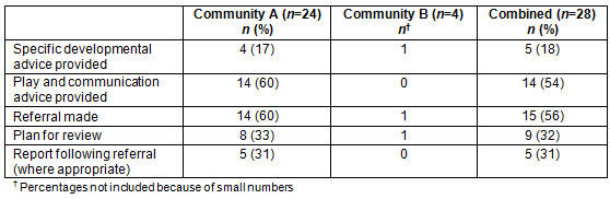 Table 3: Action taken if a developmental problem was identified in communities A and B, December 2010 - November 2011
