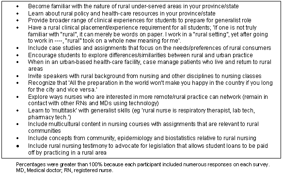 Respondents in this study suggested strategies based on personal insights that educators should consider to help address rural nursing shortages: