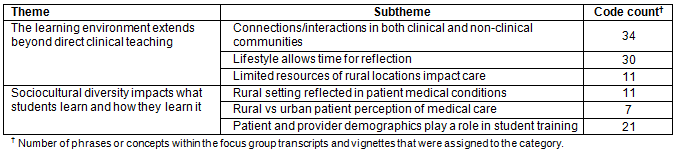 Table 1: Summary of themes related to student training experiences in a rural environment