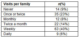 Almost all of the respondents (97%, n=150) were aware of the new Food Hub Green Grocer, and 91% (n=141) had shopped at the Green Grocer. Table 1 shows the sample population's frequency of shopping at the Green Grocer. Even though a majority of the sample population regularly shopped at the Alderson Green Grocer, 77% (n=120) of them did most of their grocery shopping at a store more than 17.7 km (11 miles) from Alderson. The number of long-distance grocery shopping trips families made after the food desert (3.3±0.4 trips per month) did not change significantly (p=0.16) from the number that were made before the food desert (2.8±0.3 trips per month).