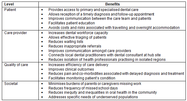 Table 1: Benefits of teledentistry