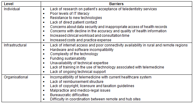 Table 2: Barriers to the uptake of teledentistry