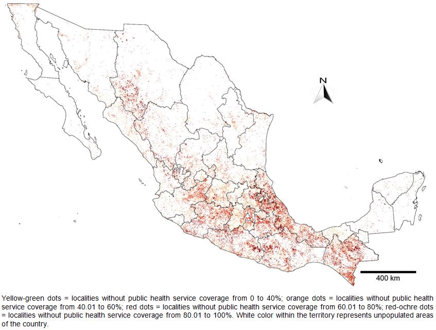 Figure 1: Distribution of the Mexican population without public health service coverage.