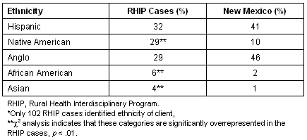 Table 1: Ethnicity distribution in 102 RHIP cases developed between 1991-2002 compared with New Mexico demographics for 2000*