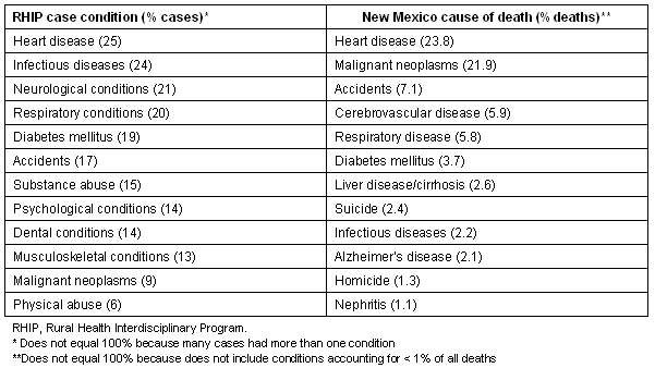 Table 2: Comparison of the most common RHIP case conditions with the leading causes of death in New Mexico (in descending order of frequency)