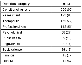 Table 3: Frequency of types of questions in cases (n = 222 cases)
