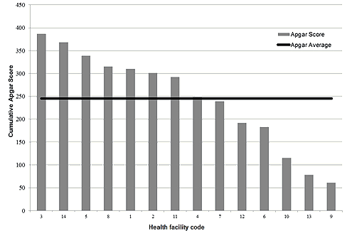 Figure 1: Cumulative mean community Apgar scores according to location.
