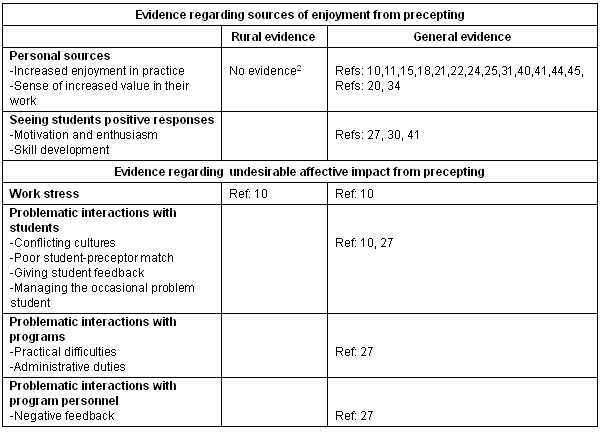 Table 1: Evidence regarding sources of enjoyment from precepting
