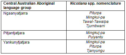 Table 1: Central Australia Aboriginal names for Nicotiana spp.