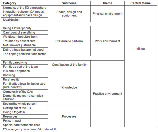 Table 1: Final categories, subthemes and themes across participating emergency departments