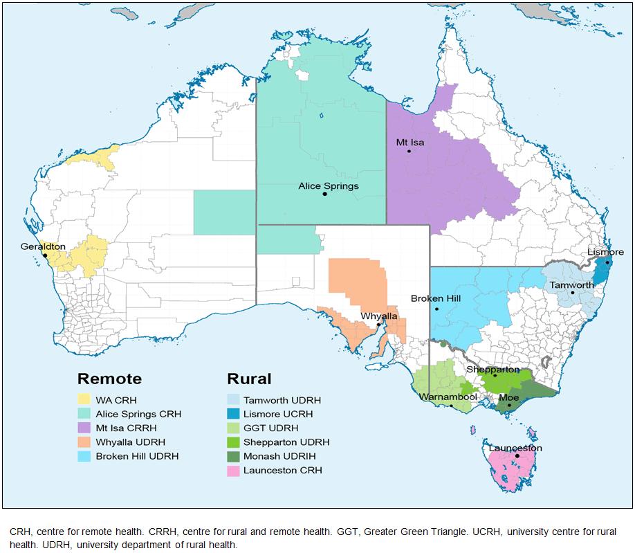 This project was supported by a grant from the Australia Rural Health Education Network (ARHEN). The authors acknowledge the cooperation of ARHEN and the UDRH Network in completing this project, and Michael Frommer for reviewing the manuscript. The Monash University School of Rural Health–Bendigo and the Broken Hill University Department of Rural Health, University of Sydney are funded by the Australian Government Department of Health.